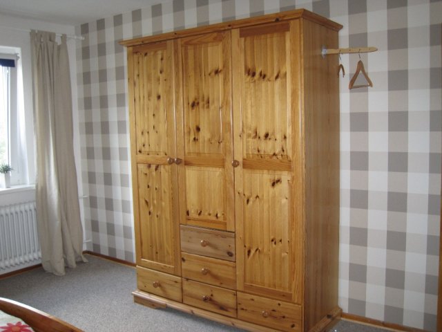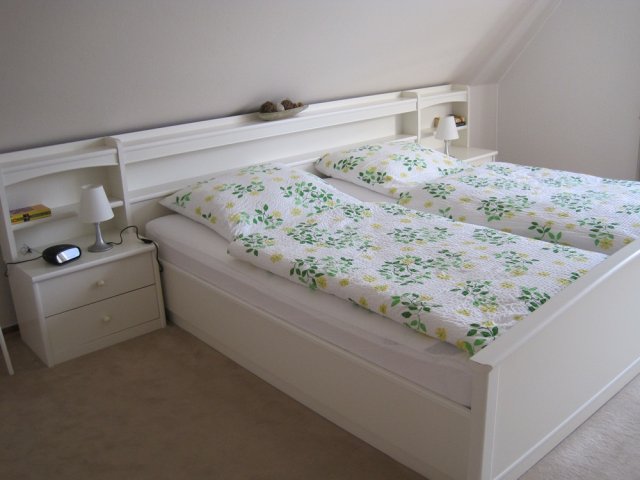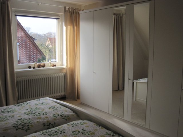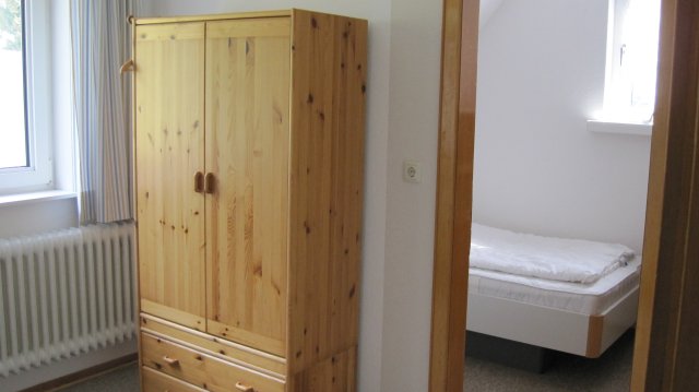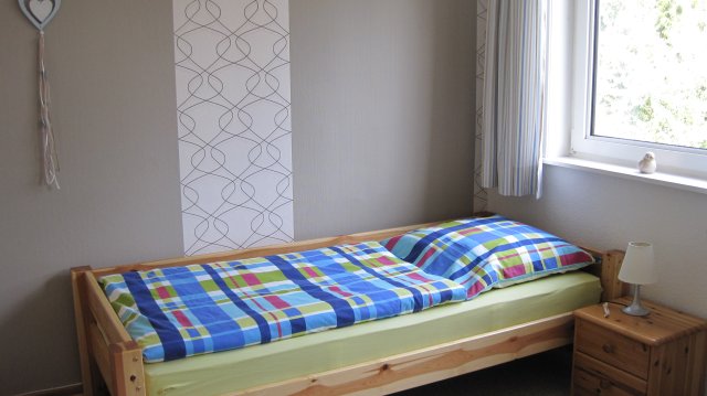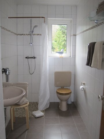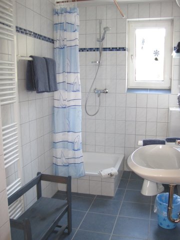 Im Obergeschoss finden Sie die Schlafzimmer. Es stehen Ihnen 2 Doppelzimmer und 3 Einzelzimmer zur Verfügung. Auf Wunsch kann auch ein Kinderreisebett bereitgestellt werden. Alle Zimmer sind mit Verdunklungsrollos und zuziehbaren Gardinen ausgestattet. Ein weiteres Badezimmer mit Duschwanne befindet sich ebenfalls im Obergeschoss.