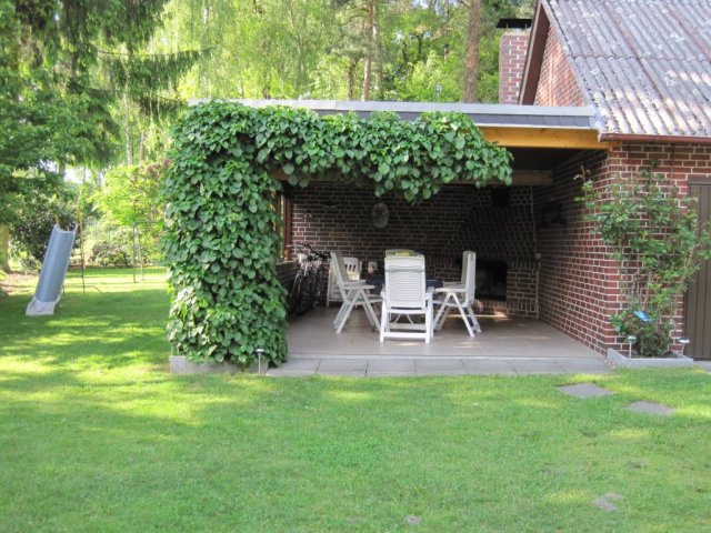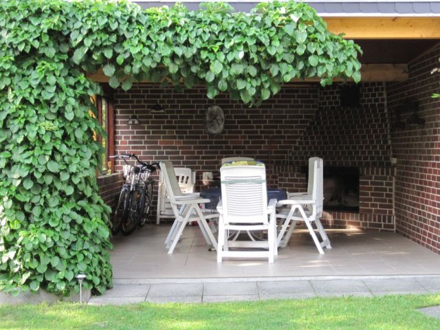 Auf der überdachten Terrasse können Sie es sich herrlich gemütlich machen. Sie bietet Schutz vor der Sonne an heißen Sommertagen und am Abend verbreitet der Kamin eine gemütliche Atmosphäre. Ein Grill steht Ihnen hier ebenfalls zur Verfügung.